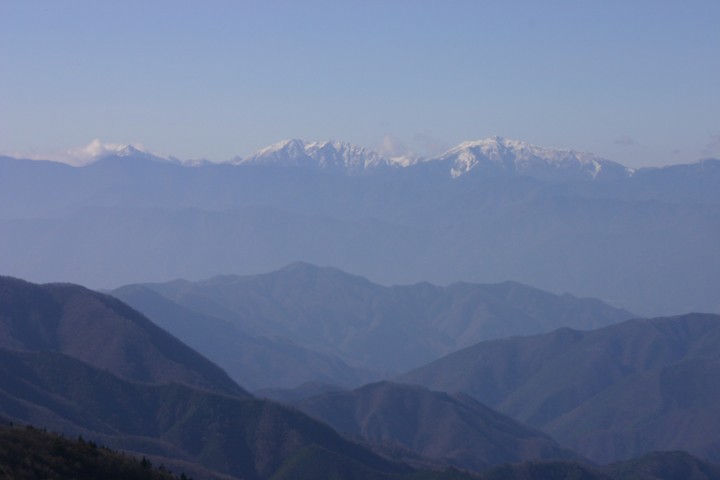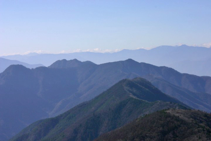 展望を期待して釈迦ヶ岳〜黒岳を歩いた。空気の透明度はいま一つだったが、頂上からは360°のパノラマを楽しむことができた。