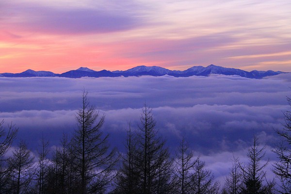 残照の南アルプス。寒かったせいもあるが、ゾクッとするくらい美しい景色だった。