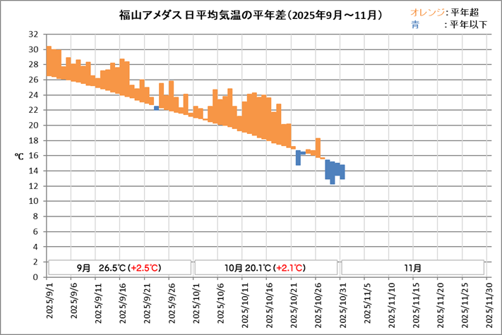 10月の気温の平年差+2.1℃は歴代2位の記録でした。