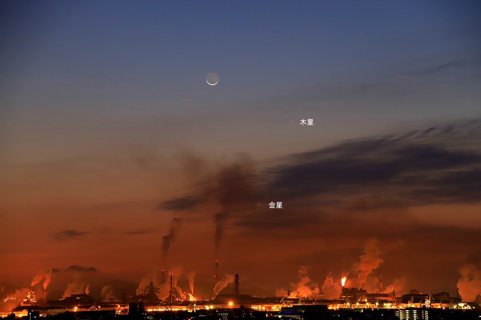 月と火星・金星 2017.02.01_18:20 |